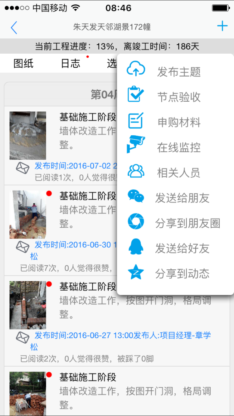 二、點(diǎn)擊自己管理的工程項目,右上角點(diǎn)+號,點(diǎn)擊相應(yīng)按鈕