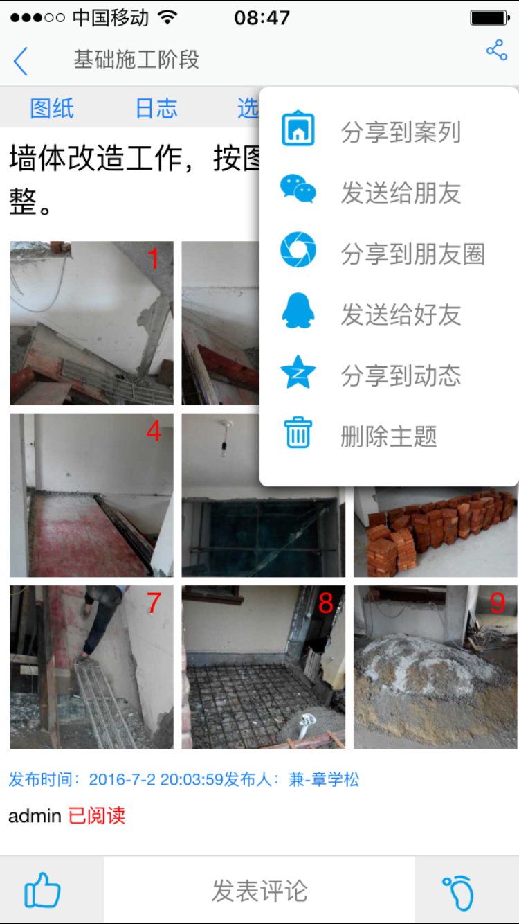 五、對主題進(jìn)行評論等互動,督促和監(jiān)督施工管理人員的作業(yè)標(biāo)準(zhǔn)