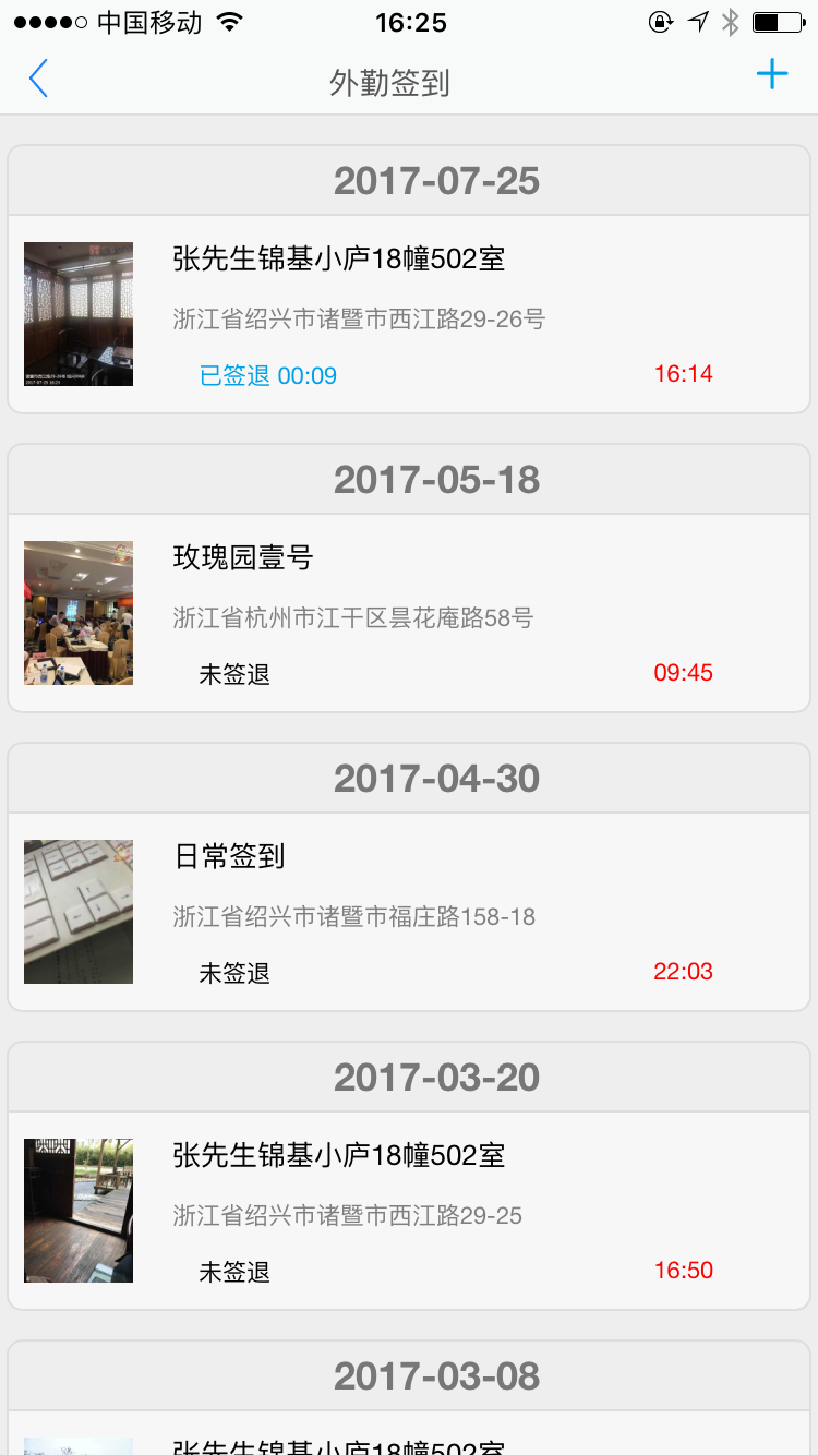 一、點(diǎn)開首頁外勤簽到-點(diǎn)擊右上角+號,即點(diǎn)開右圖簽到頁面