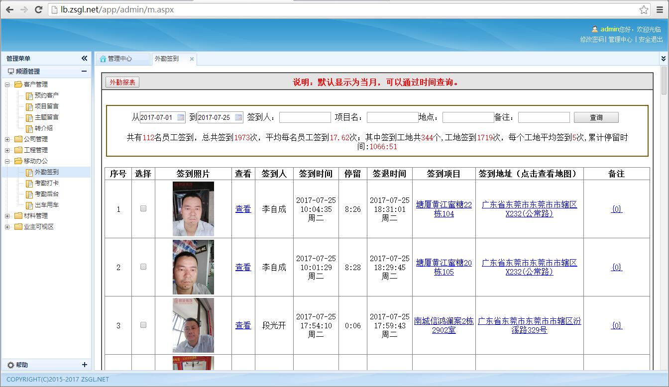 五、工地簽到APP后臺展示